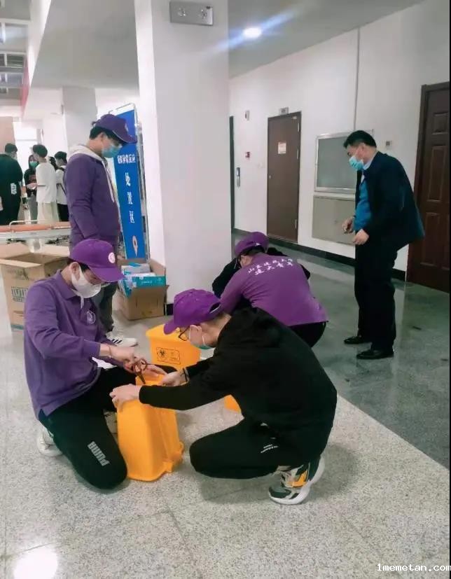 (志愿者协助医护工作者布置场地)