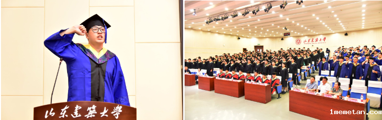 毕业生代表庞跃忠同学表达了对母校、老师、同学的难舍情感,并代表毕业生表达了为校争光、回报社会的决心。