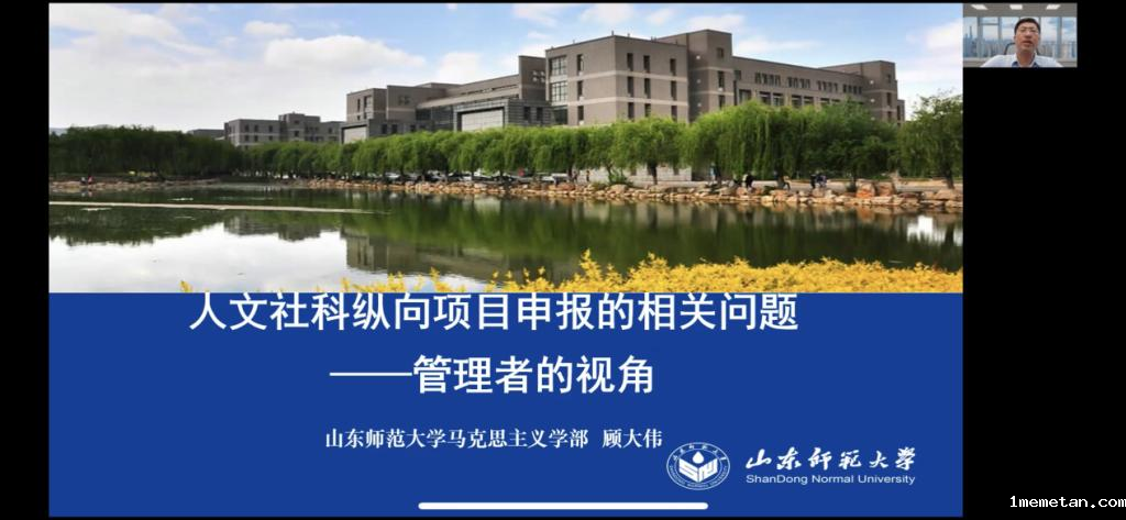 顾大伟从“科学研究可以从申报项目开始”“人文社科纵向项目体系及大体申报时间”“国家社科基金项目(省社科)申报书(活页)填报”“申报人文社科研究项目有技巧”四个方面展开讲解。