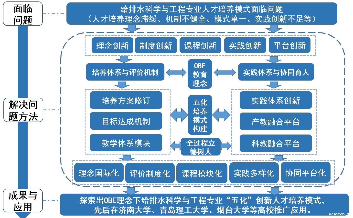 在我国签约《华盛顿协议》背景下,以学生为中心的成果导向教育(Outcome based education,OBE)已成为我国工程教育改革的重要理念。近年来给排水科学与工程专业人才培养逐步与国际接轨,行业对人才能力要求越来越高,新形式下探索如何培养国际认可的应用创新型复合人才,显得尤为重要。