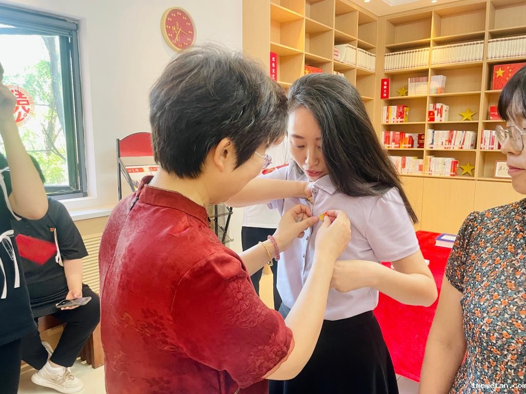活动中,图书馆馆领导和各党支部书记带着满怀的敬意与庄重,为每位党员佩戴党徽。党徽作为党员身份的象征,在这一刻被庄重地放置在每位党员同志的胸前,象征着他们肩负的责任与使命。