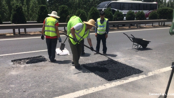 四、为解决路面坑槽病害热拌料修补不及时、冷补料质量差的现状,依托山东省重点研发计划项目“高性能坑槽冷修补沥青混合料研发与应用”,以多种生物基材料开发了高性能冷补沥青添加剂,形成了冬季、雨天均可施工的全天候坑槽修复冷补料及其生产施工技术,坑槽补后数年不坏,成本和性能优势明显,研究成果经专家评价达到国际领先水平。
