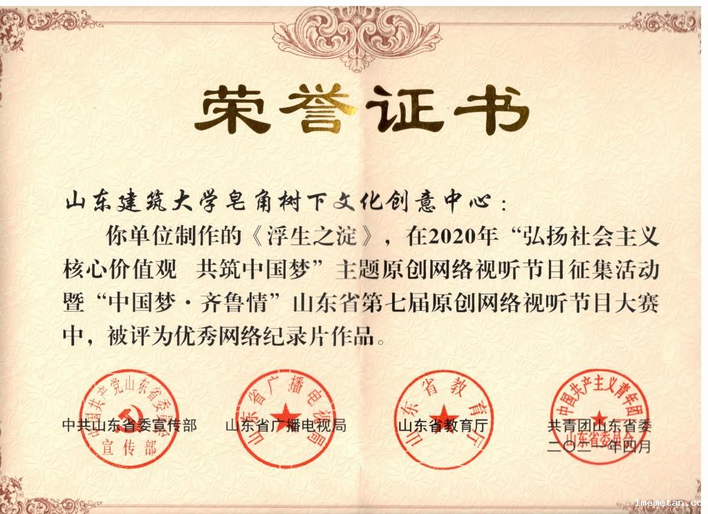 近日,由山东省委宣传部、山东省广播电视局、山东省教育厅、共青团山东省委共同组织发起的2020年“弘扬社会主义核心价值观,共筑中国梦”主题原创网络视听节目大赛落下帷幕。由我校艺术学院周莹老师带领学生制作的纪录片《浮生之淀——世预赛直播入口博物馆时光记》被评为山东省第七届原创网络视听节目大赛优秀网络纪录片。